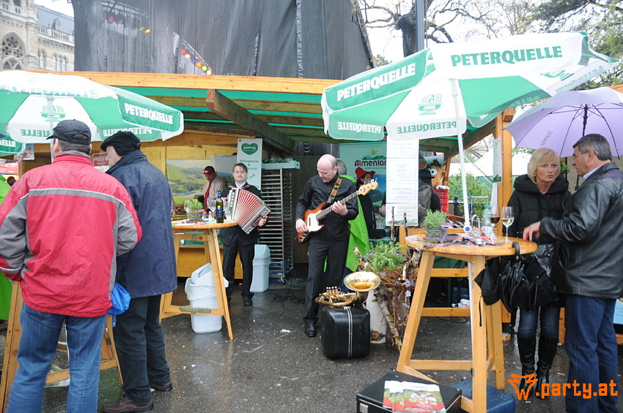 "In der Steiermark scheint auch nicht immer die Sonne! Trotz Regen geigten Seirer rechtzeitig zum Frühlingsbeginn am Rathausplatz auf."