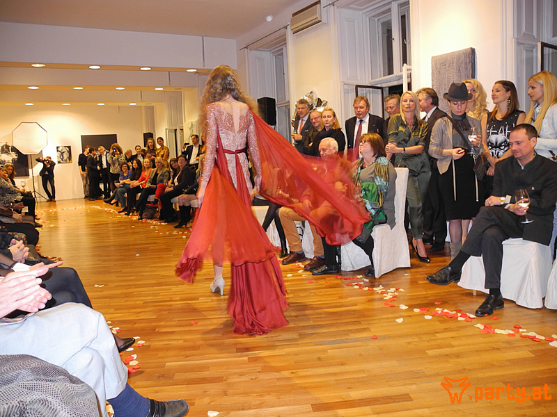 "Modeshou von Yelena Divis und Natalia Zamyatina ; exquisite Möbel aus der Kunsttischlerei Gaisbauer ; Bilderausstellung "Reduktio" von Künstler Marck"