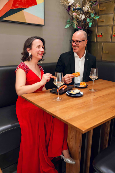 Der Opernball beginnt mit dem Einlass der illustren Gäste, gefolgt von einer prunkvollen Eröffnung, die eine Fanfare, die Hymnen und den feierlichen Einzug des Jungdamen- und Jungherren-Komitees umfasst gipfelnd im Eröffnungswalzer und dem Ausruf Alles Walzer!. Das alles und mehr können Opernball-Fans live im das Mezzanin mitverfolgen und dazu authentische Speisen wie Sacherwürstel, Frankfurter Würstel mit Saft sowie Erdäpfelgulasch mit Semmelknödeln oder Kaisersemmeln genießen. Zudem werden verschiedene Canapés auch vegetarisch und vegan angeboten und die freundlichen Mitarbeiter:innen des das Mezzanin freuen sich, mit der passenden Getränkeempfehlung aus der umfangreichen Getränkekarte behilflich zu sein. Den süßen Abschluss bilden herrliche österreichische Petit Fours, in diesem Fall natürlich Punschkrapfen. Wem der Gusto nach etwas ganz anderem steht, hat natürlich die Möglichkeit, weitere süße wie pikante, warme und kalte Speisen aus der regulären Speisekarte à la carte zu bestellen.