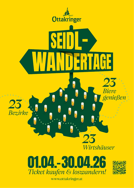 Von Simmering bis Leopoldstadt: Wien schmeckt hopfig. Was das bedeutet? Die Ottakringer Seidl-Wandertage sind wieder zurück. Vom 1. bis zum 30. April heißt es wieder: Freund:innen schnappen, gemeinsam die Bezirke Wiens erkunden und in jedem der 23. Bezirke ein frisch gezapftes Seidl genießen. Das Seidl-Wandertage-Ticket ist für 49 EUR unter www.ottakringerbrauerei.at oder vor Ort im Ottakringer Shop erhältlich.